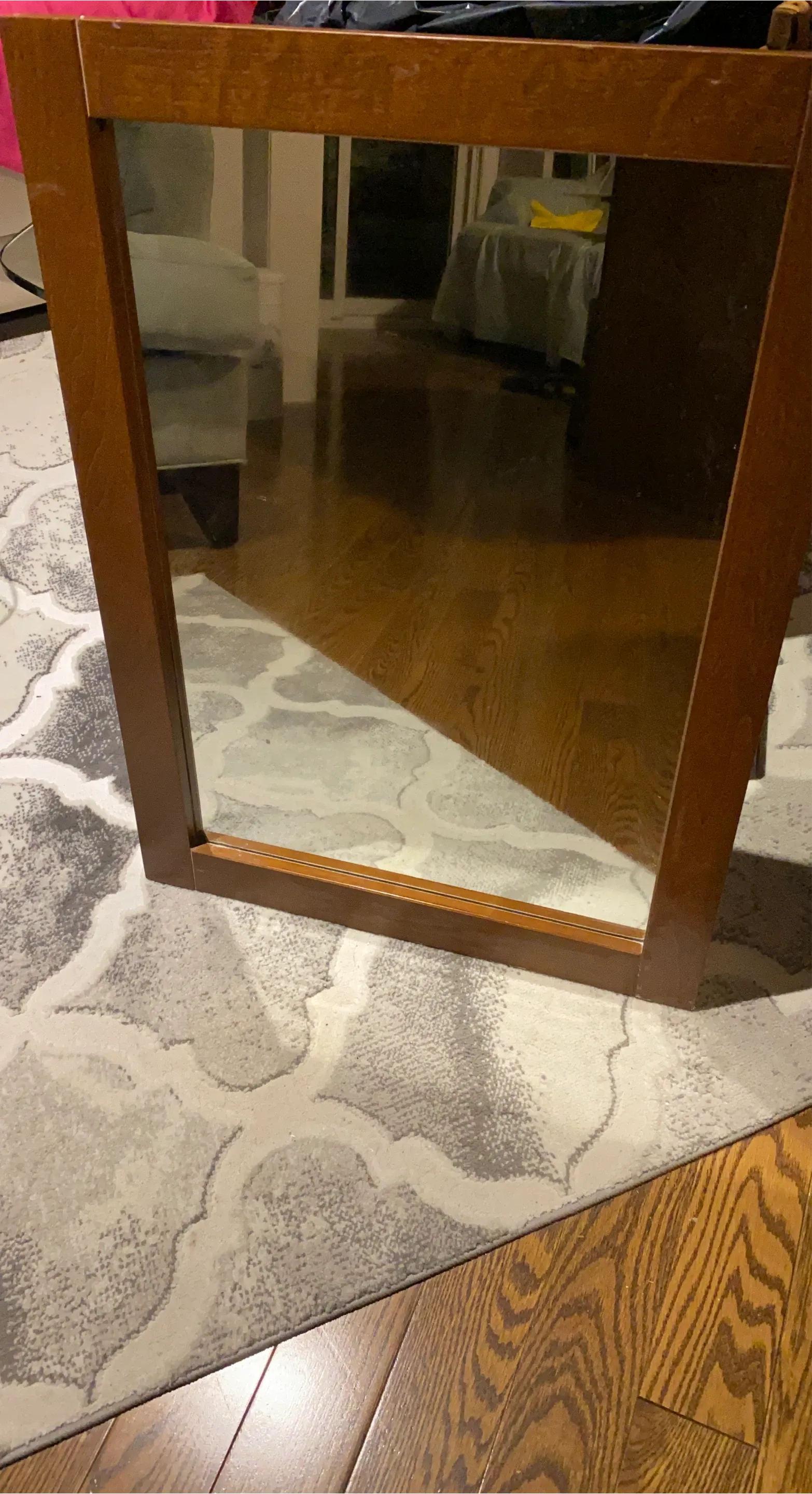 A lovely wooden framed mirror, perfect for any room. It's in great condition and ready for a new home. It's a great size for an entryway or bedroom.