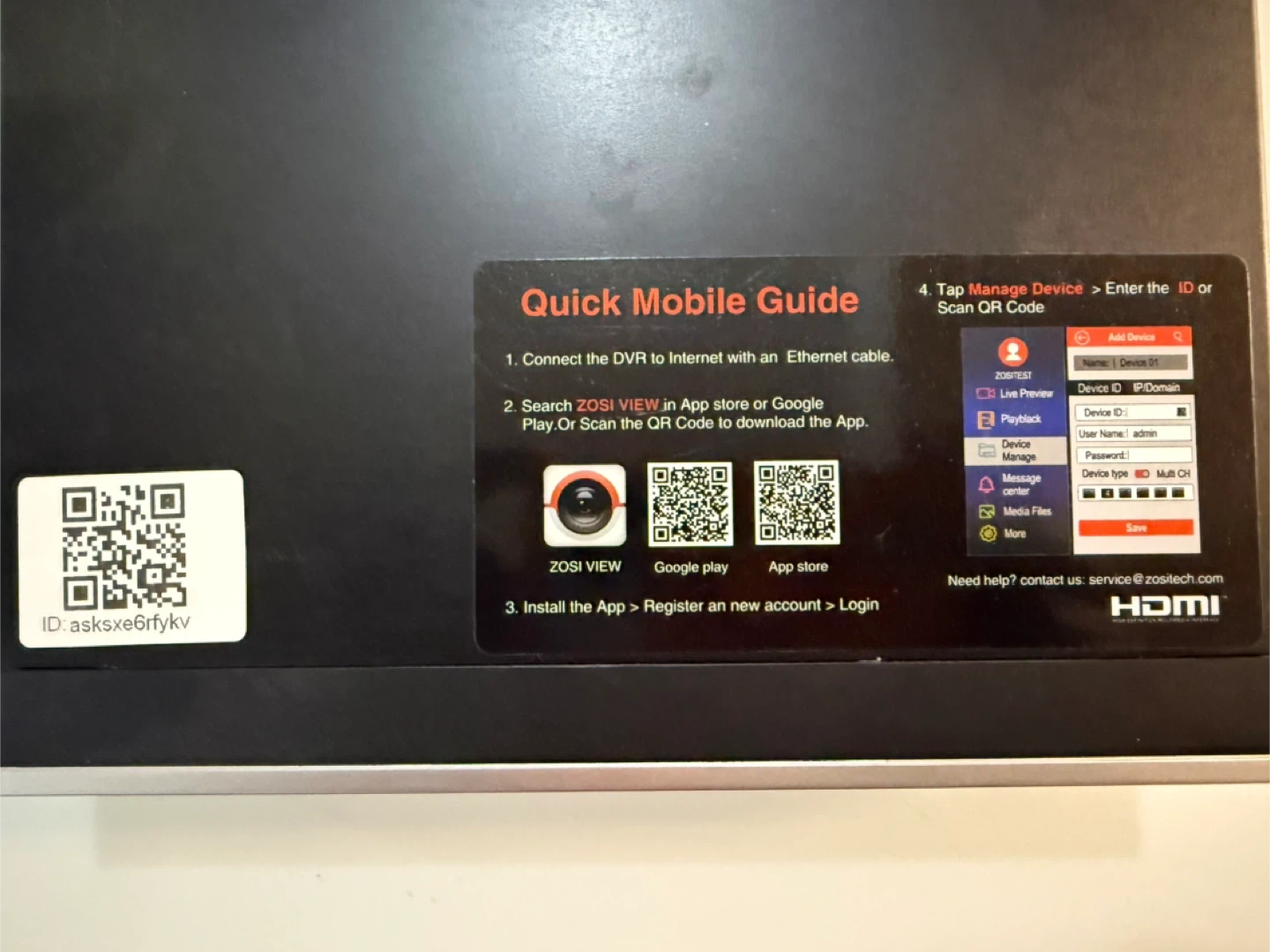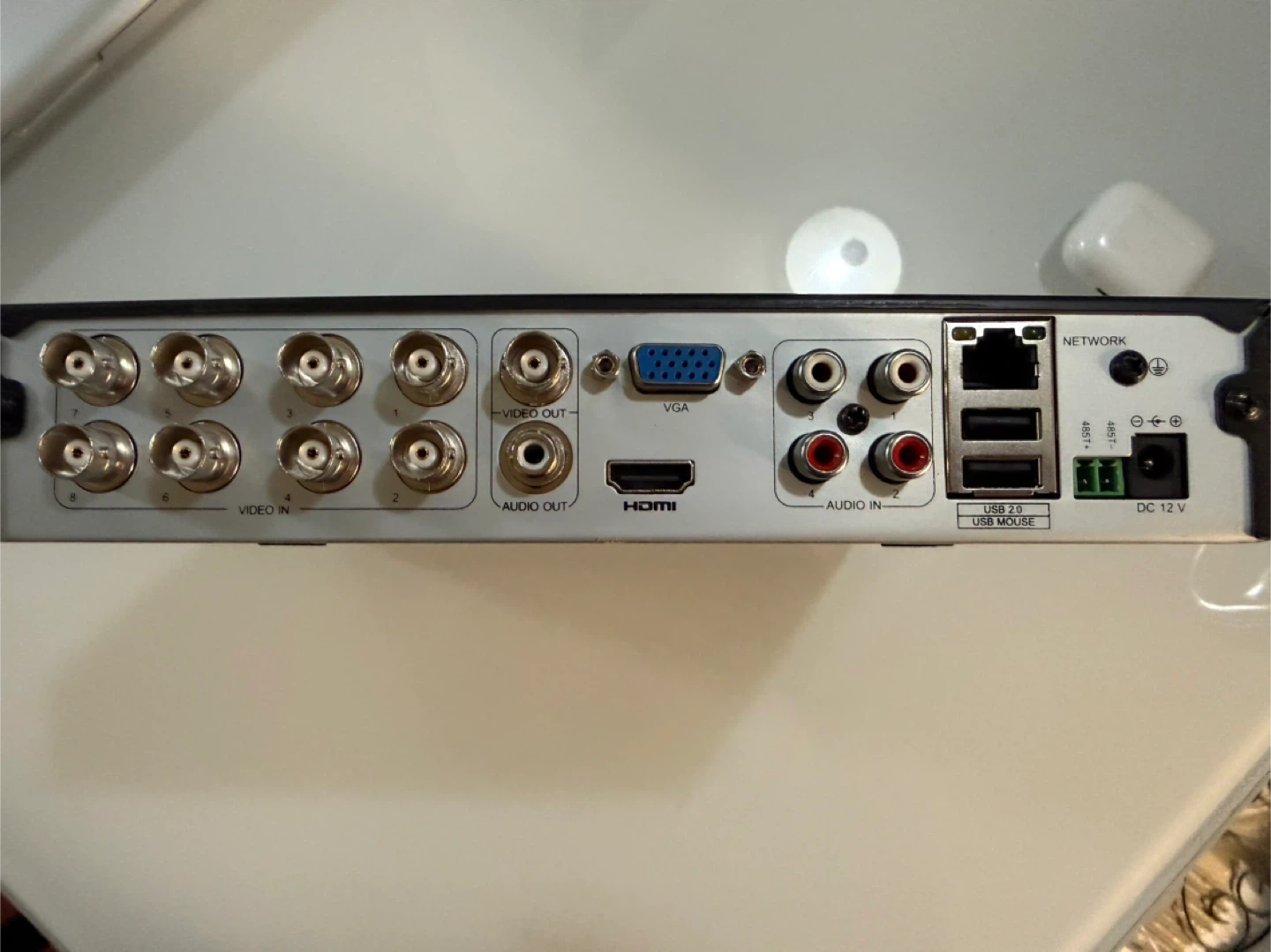 This is a ZOSI DVR security system. It comes with multiple BNC inputs for cameras and HDMI output. It supports USB mouse for operation.