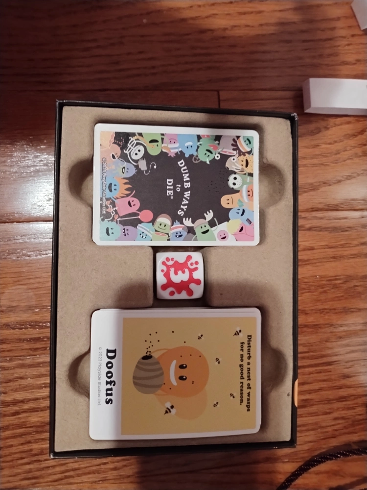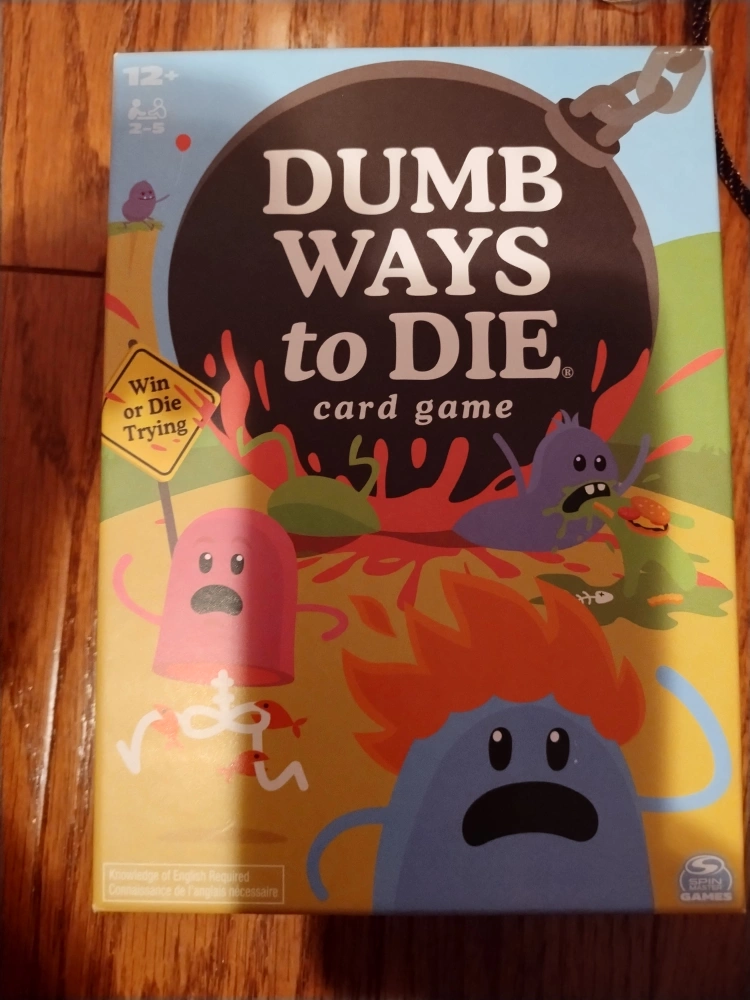 Card game with dice, 2-5 players. 12+ years. opened, played it once, not our style of game , selling to declutter space. Retail Price 15-20 dollars, am selling it for 25% off retail price.