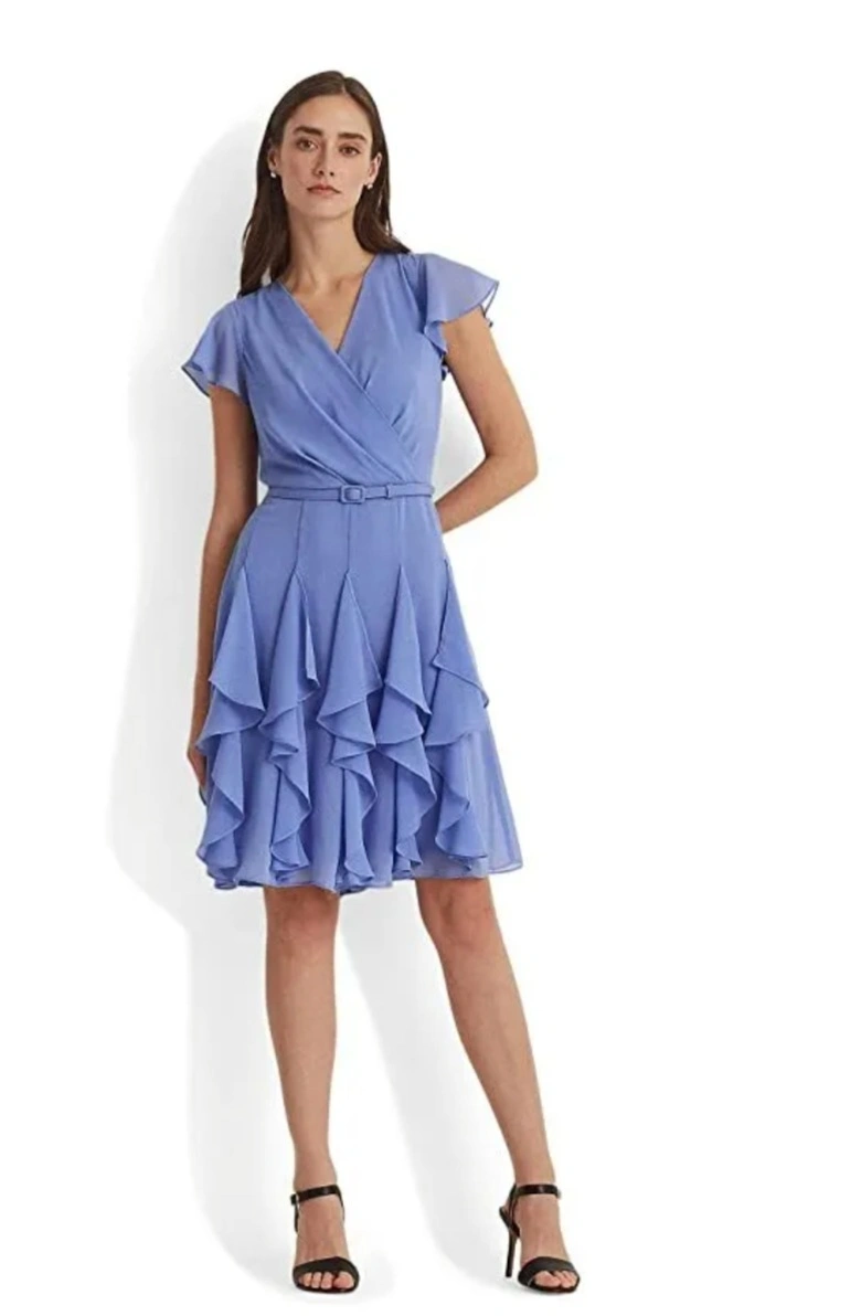 NEW Ralph Lauren Women's Ruffle-Trim Chiffon Dress - Size 8