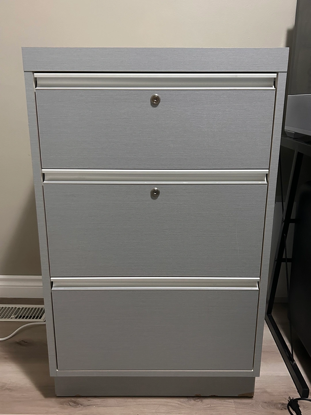 Buy & SellOffice Filing CabinetOffice Filing Cabinet$35Grey cabinet with 3 drawers. Comes with a key to lock top two drawers. I’m good condition.Dimensions22 x 24 inches WHERE TO MEETGrand WellnessView MapSELLERShaganaW Brant160 reviews2 chats·1 favorites·58 views