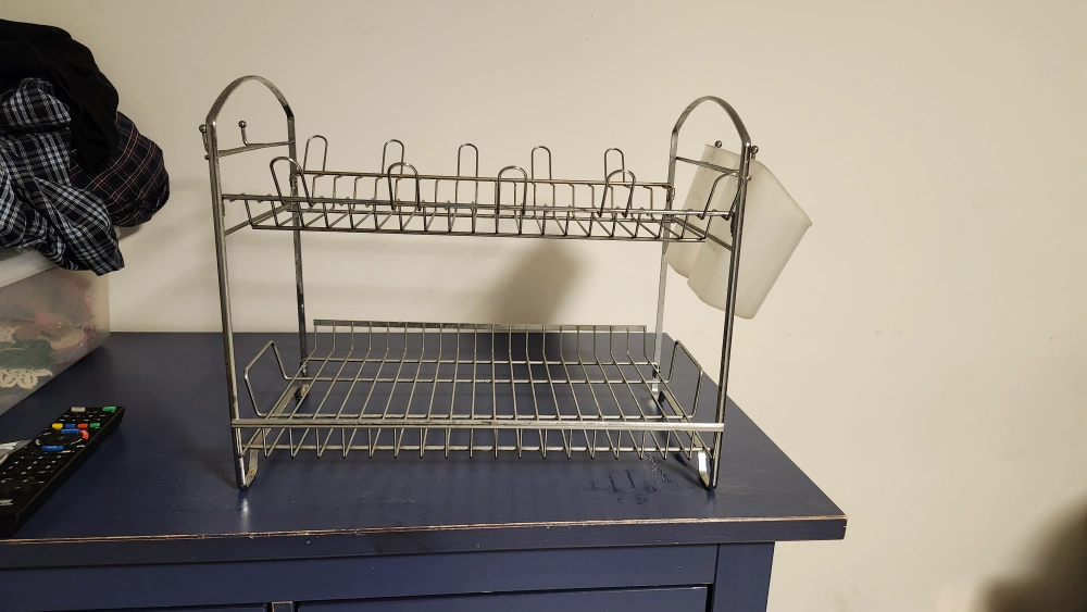This stainless steel wonder is an amazing apparatus that will sit next to your sink and will allow you to set down your wet dripping dishes straight out of the wash without getting all that messy water everywhere! The second level added on this model is a game changer if you frequently have a large volume of dishes you are washing and trying to contain the mess of while drying