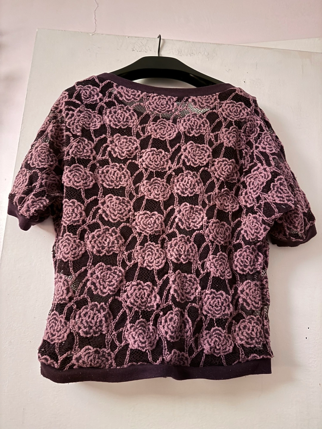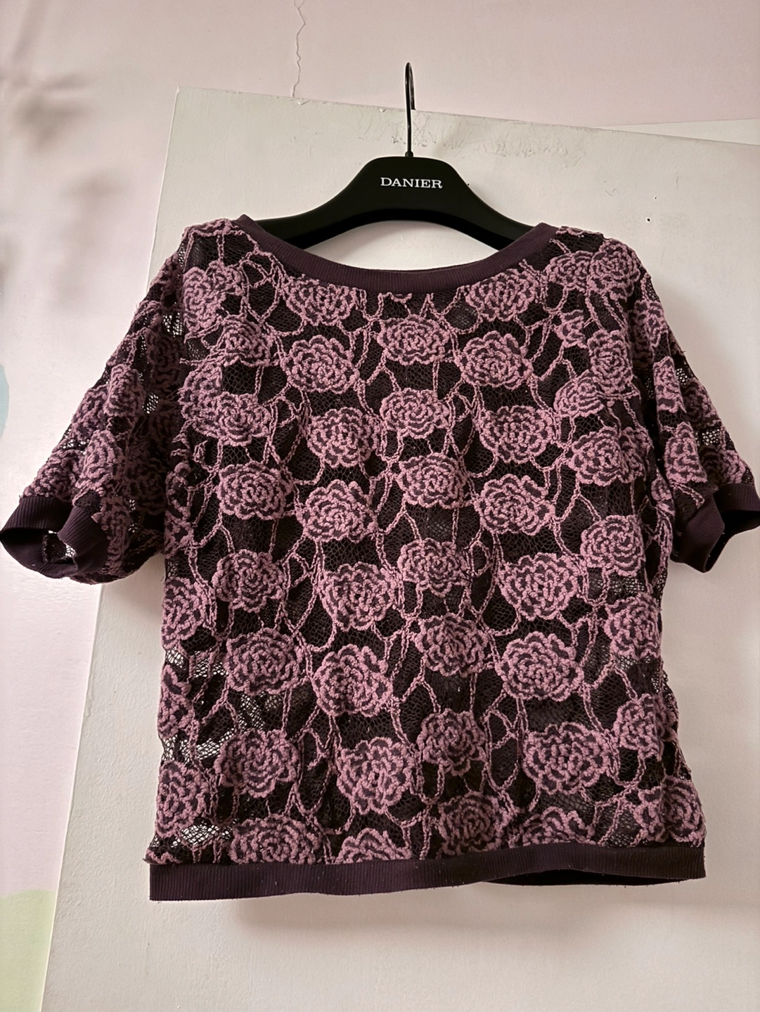 Short-sleeved top with a floral lace pattern. Made from a lightweight material, perfect for spring or summer.