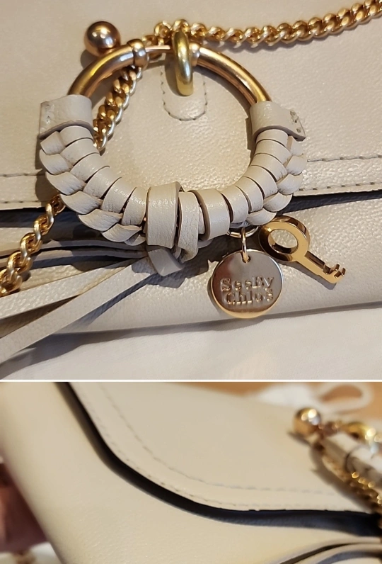 Chain bag with a braided leather detail and a key charm. Comes with dust bag.