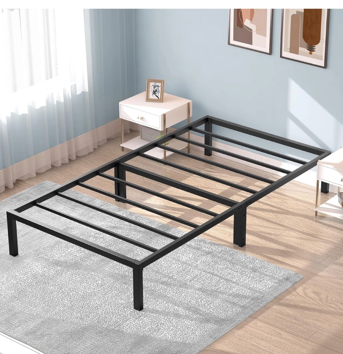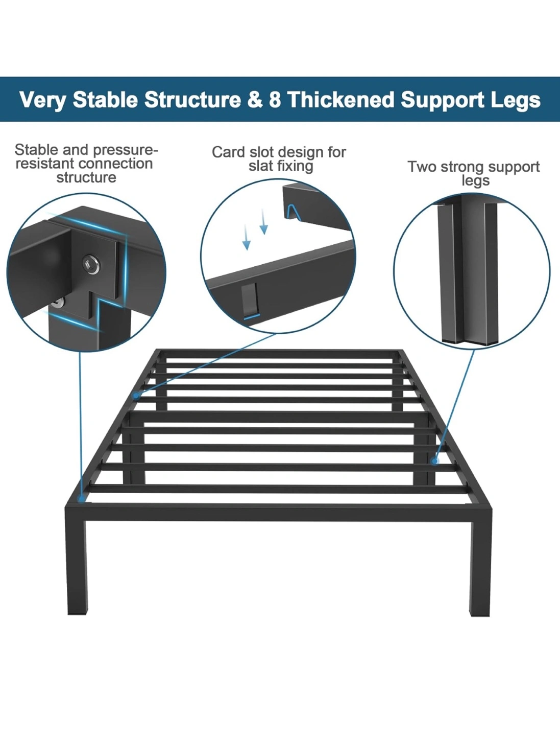 NEW assembled but not used Metal bed frame with 8 thickened support legs. Supports up to 800 lbs. Large under-bed storage space. Silent, anti-slip and floor protection.