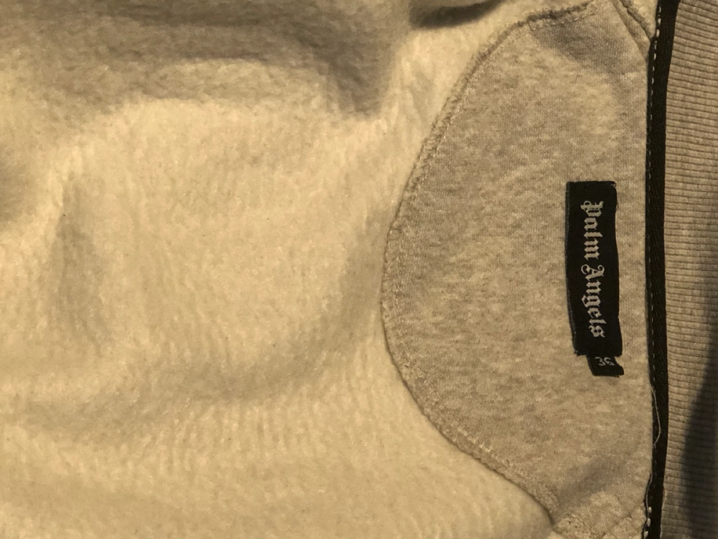 Grey tracksuit. Jacket has black and white stripes on the sleeves. Both pieces have the Palm Angels logo. Inside tags also available. Looking to sell for fair and reasonable price or fair trade.