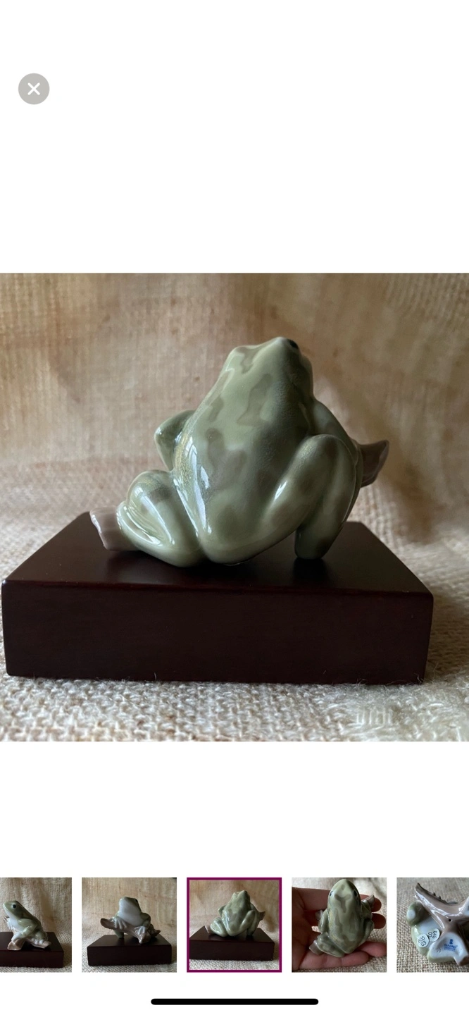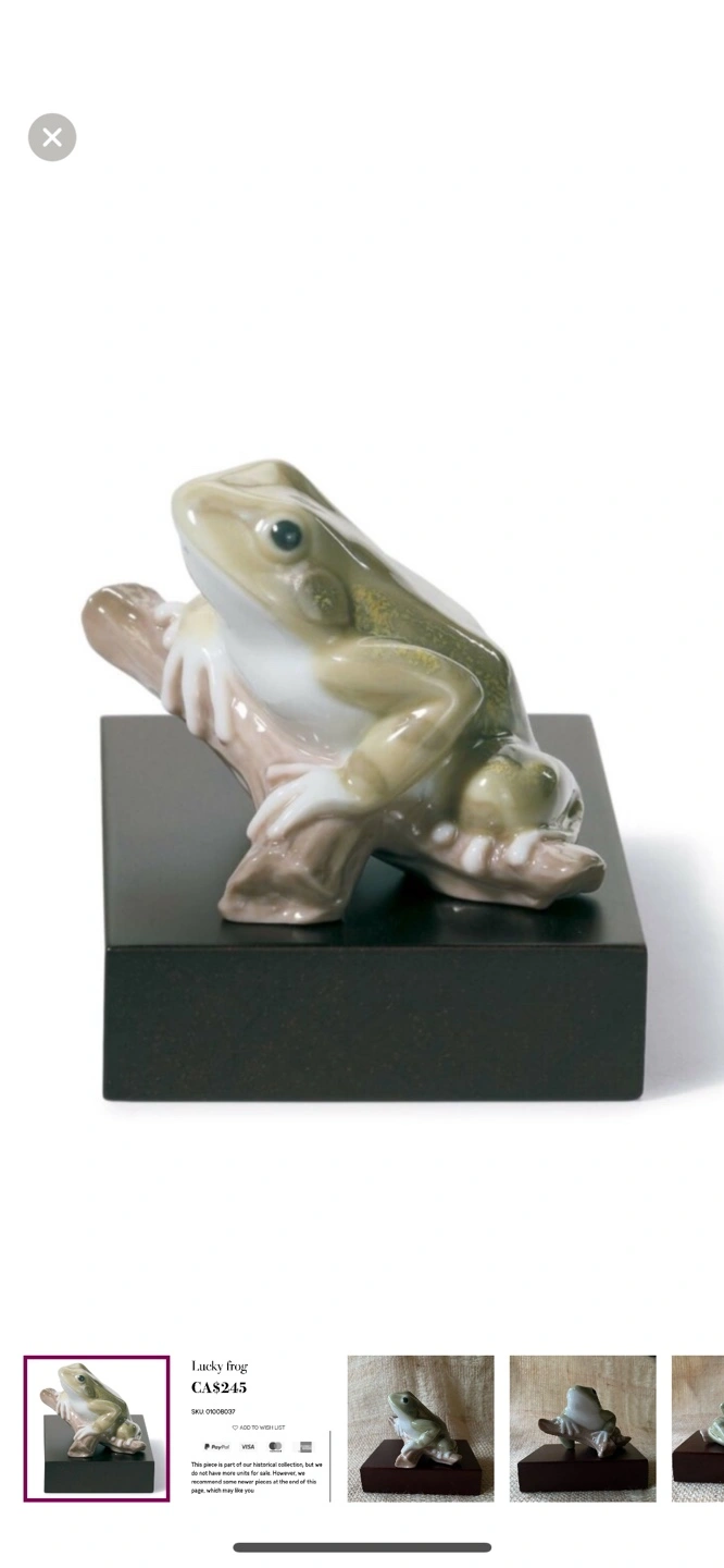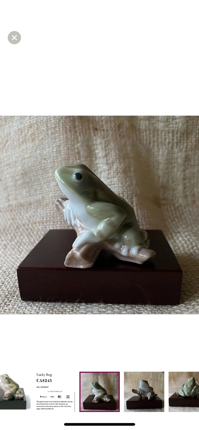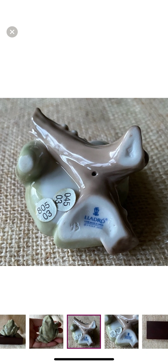Lladró Lucky Frog figurine of a frog on a branch. From their ‘knock on wood’ fauna collection. Base is not attached. This is a discontinued retired figurine. 2003 is stamped on the bottom.