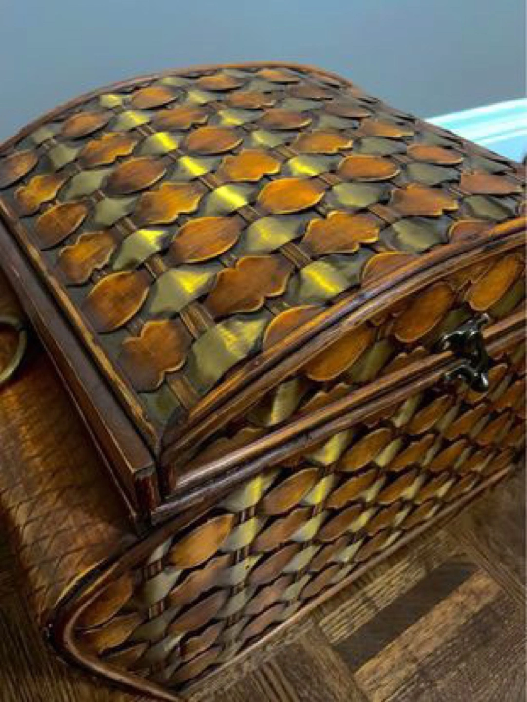 Exquisite and distinctive piece with a stunning color scheme. Shows minor indications of use and aging. Vintage Circa 1970’s