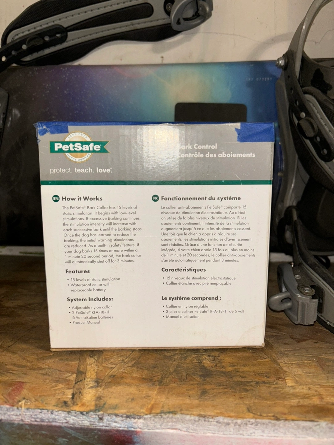Bark control collar, discourages barking and whining. 15 levels of static stimulation, adjustable nylon collar. 6 Volt alkaline batteries.