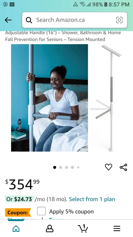 65Adjustable handle for shower, bathroom, or home. Fall prevention for seniors. Tension mounted. White and grey. bed transfer pole with adjustable grip asking 150 retails for 354 99 plus taxes