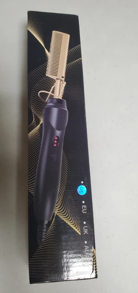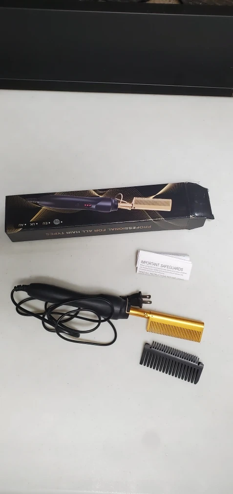 444Brand new in the box. Retails for $30 +taxes Gold ceramic heated straightening comb. Includes a comb attachment.