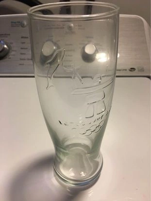 Glass from the 2010 Vancouver Olympics. It features the Olympic rings, and the year 2010.