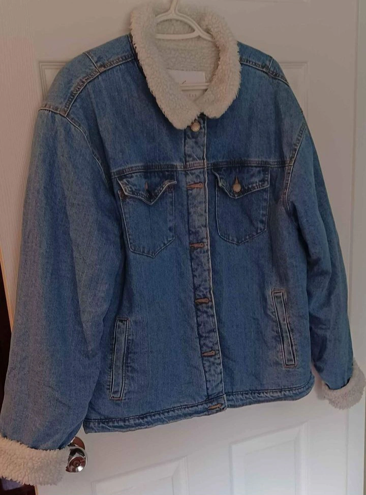 486Blue denim jacket with sherpa lining. Size XL/TG. Shell 100%Cotton Keeps warm Fairly used No stains or damage