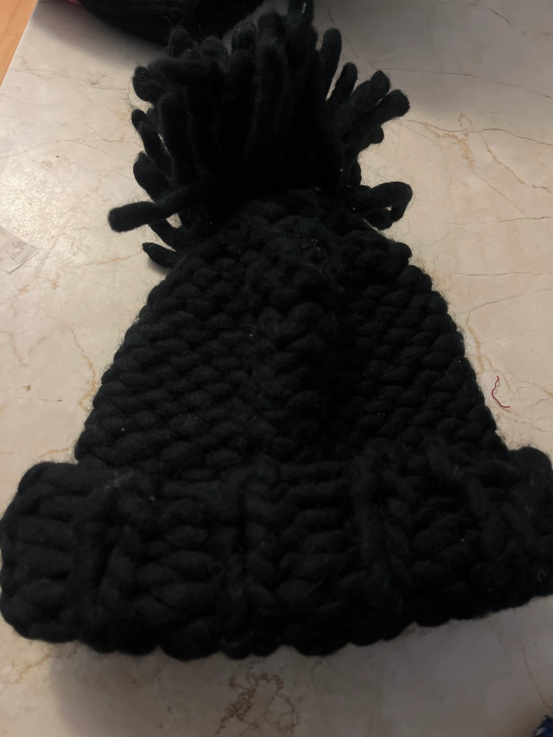 Black knit toque with a pompom. Made from soft material. New has not been used!