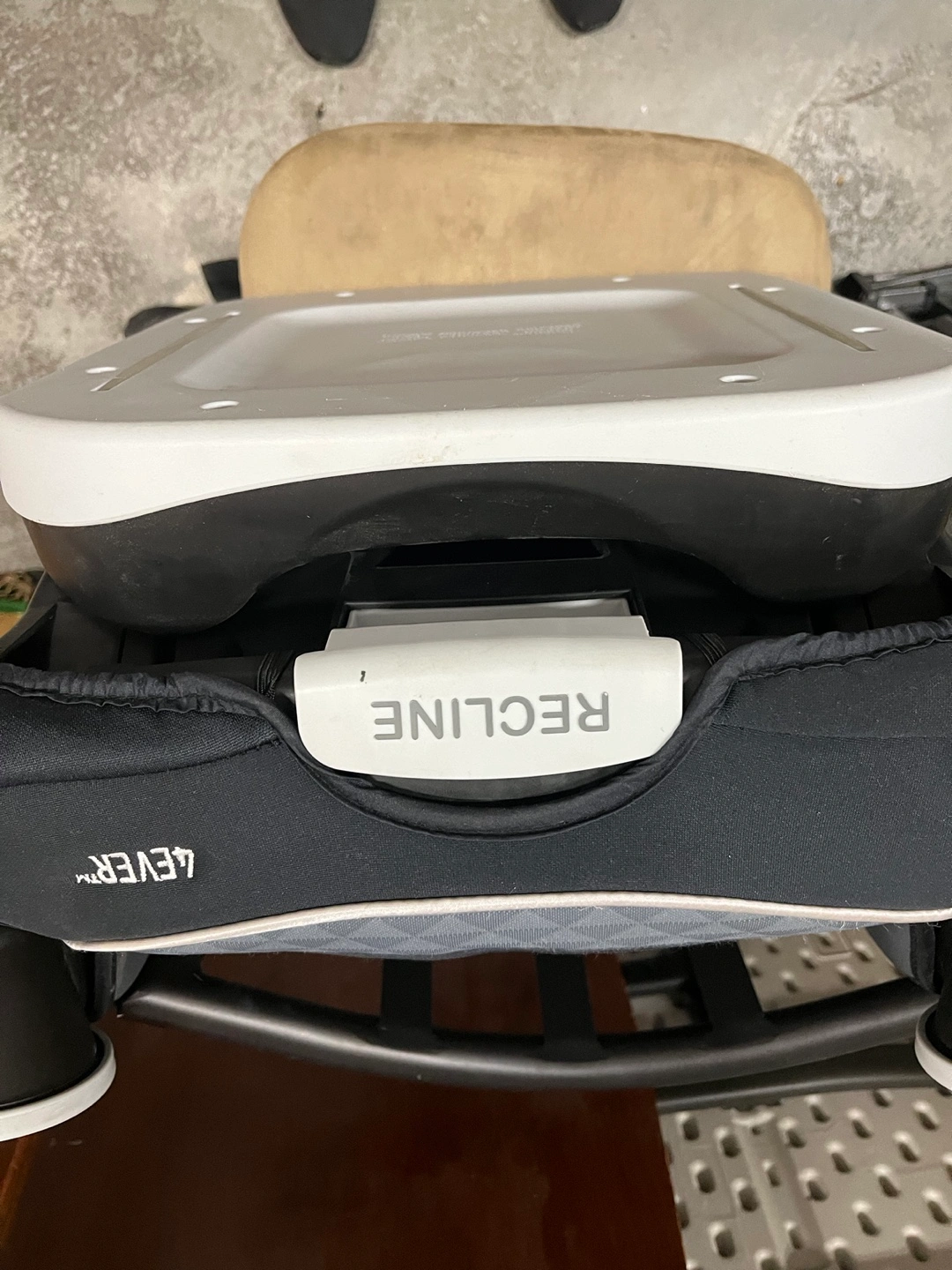346Gray and black highback booster car seat with cup holders.