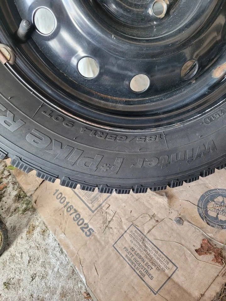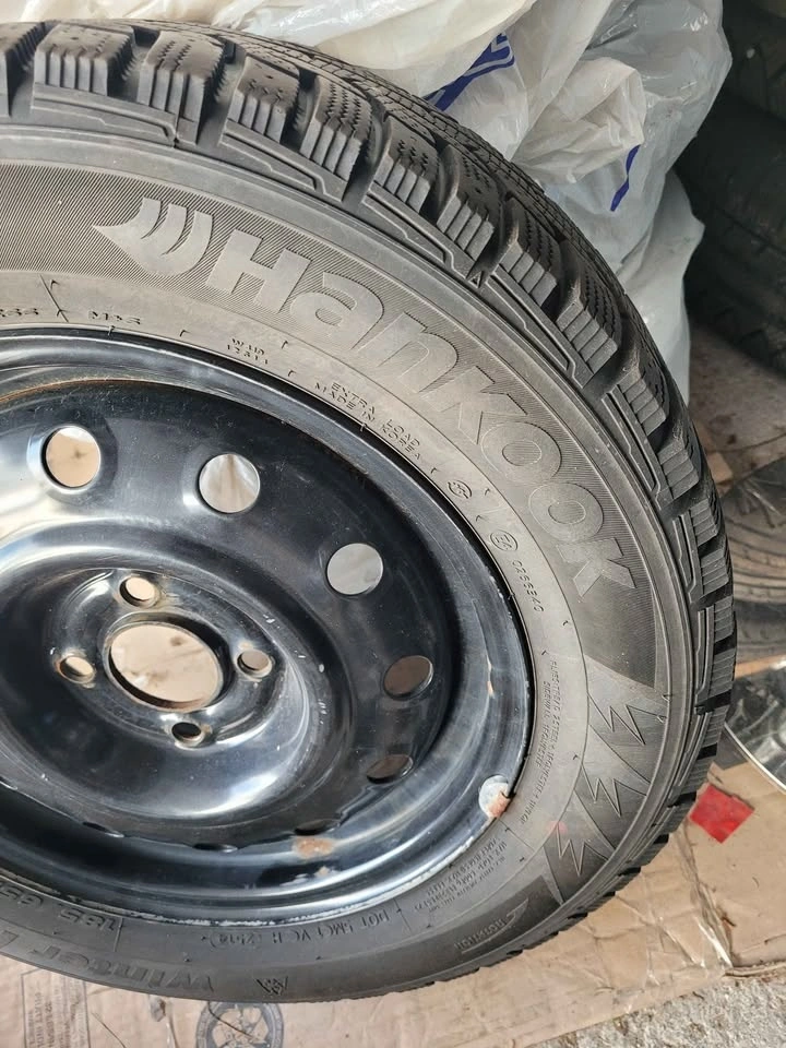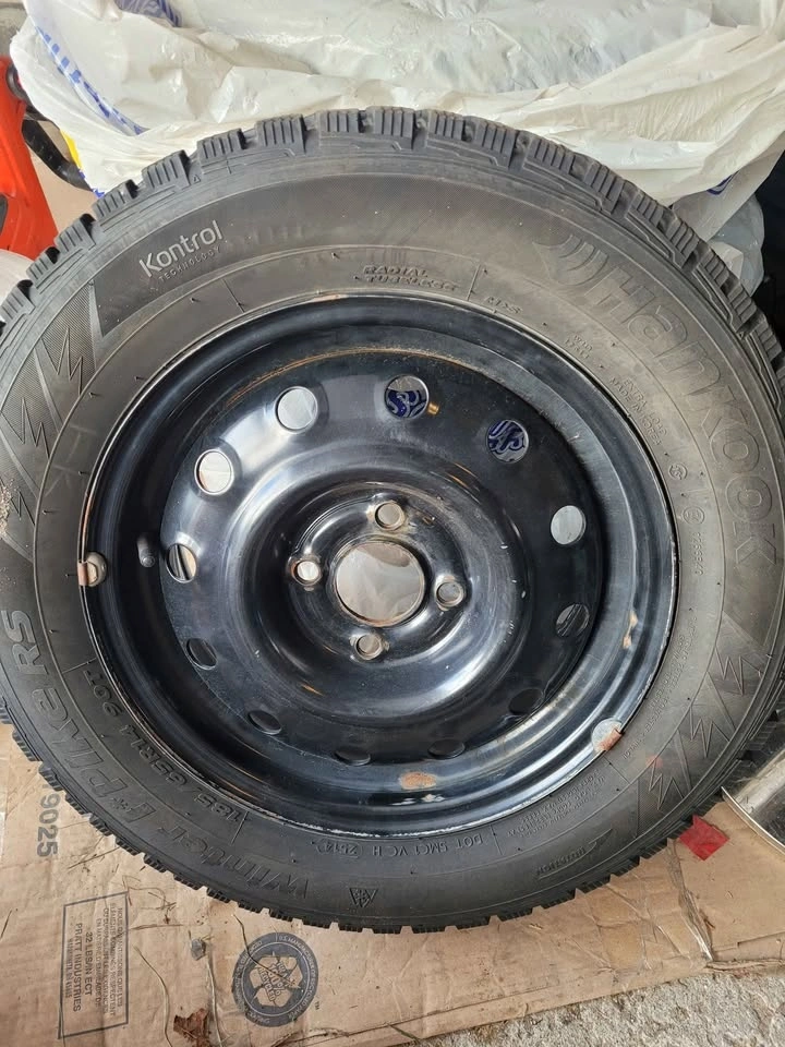 Set of 4 Hankook winter tires, size 185/65R14 90T, on rims. These tires have a 4-bolt configuration. Very good condition.
