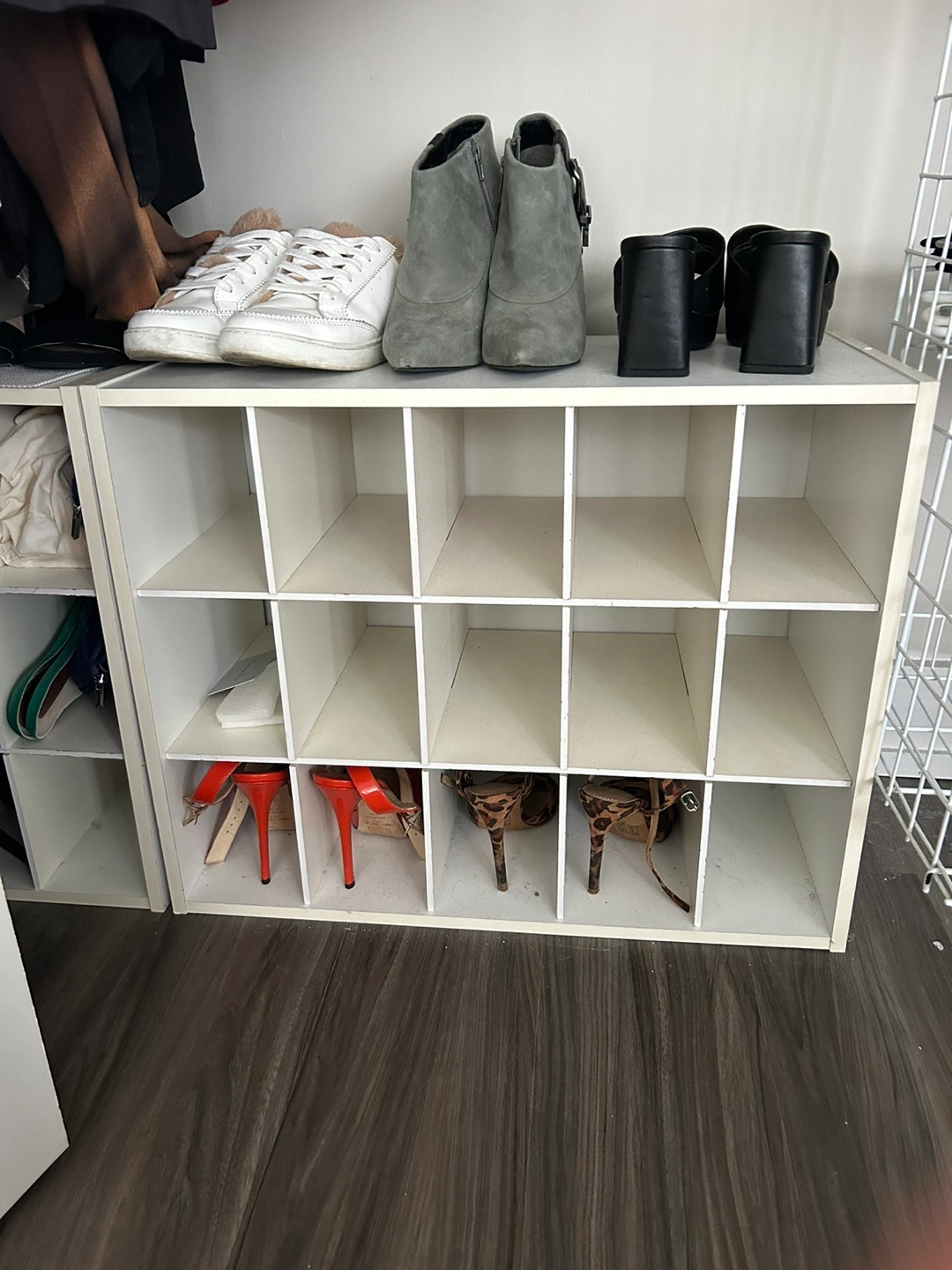White shoe rack with 12 compartments. Great for organizing your shoes.