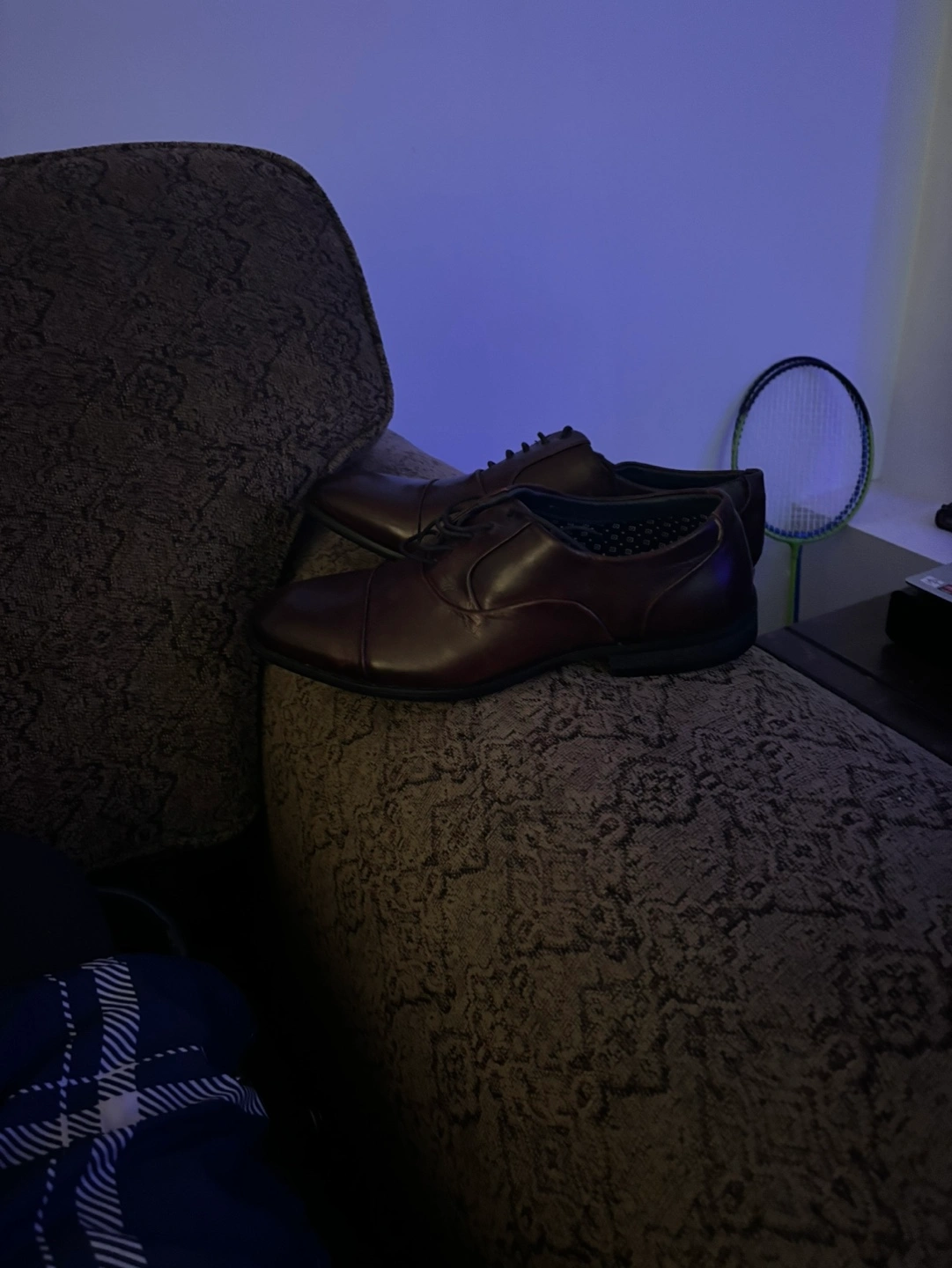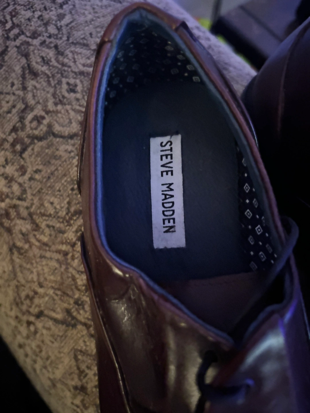 Brown leather lace-up dress shoes. Size 10. Basically new, rarely if ever worn.