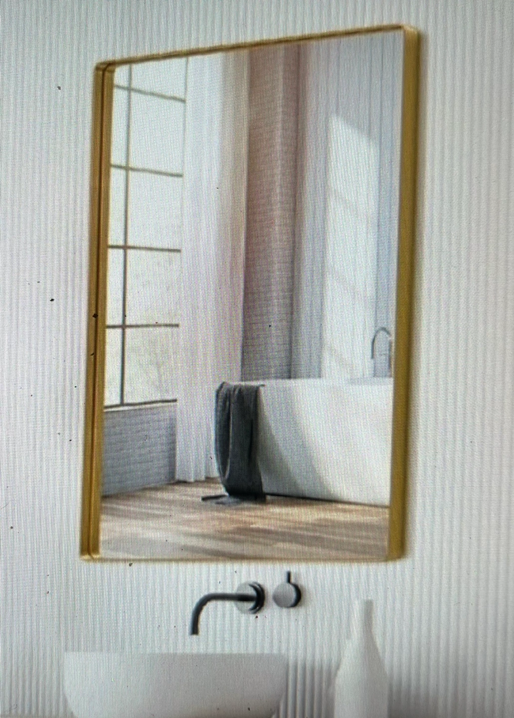 Gold framed wall mirror. Includes mounting hardware and installation manual.