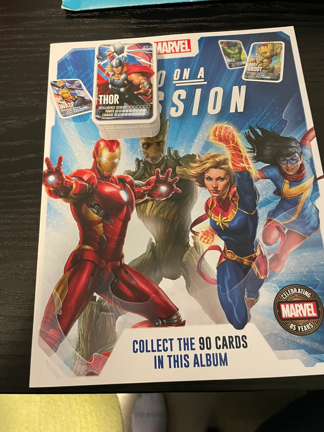 Marvel Go on a Mission card album and complete set of cards. Includes album which has a place to store all 90 cards.
