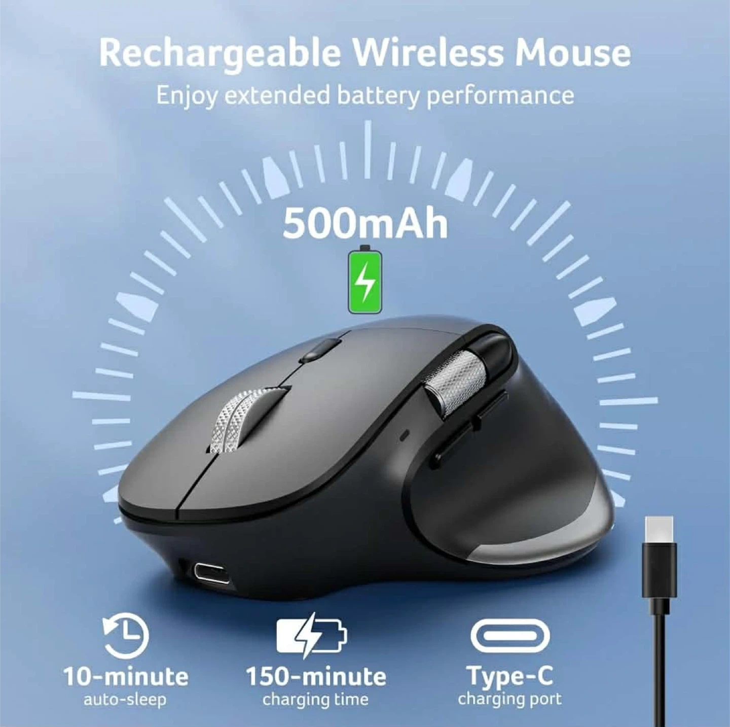 This Acer dual-mode wireless mouse offers convenient connectivity. It features a 500mAh battery with Type-C charging and a dedicated side scroll wheel for easy page navigation. Enjoy extended battery performance with its 10-minute auto-sleep function.