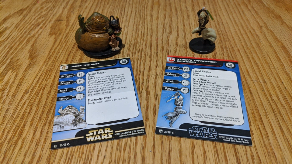 751Star Wars Minis (x2) Miniatures. Dart Vader's Apprentice Redeemed (2007). Jabba the Hutt (2004).