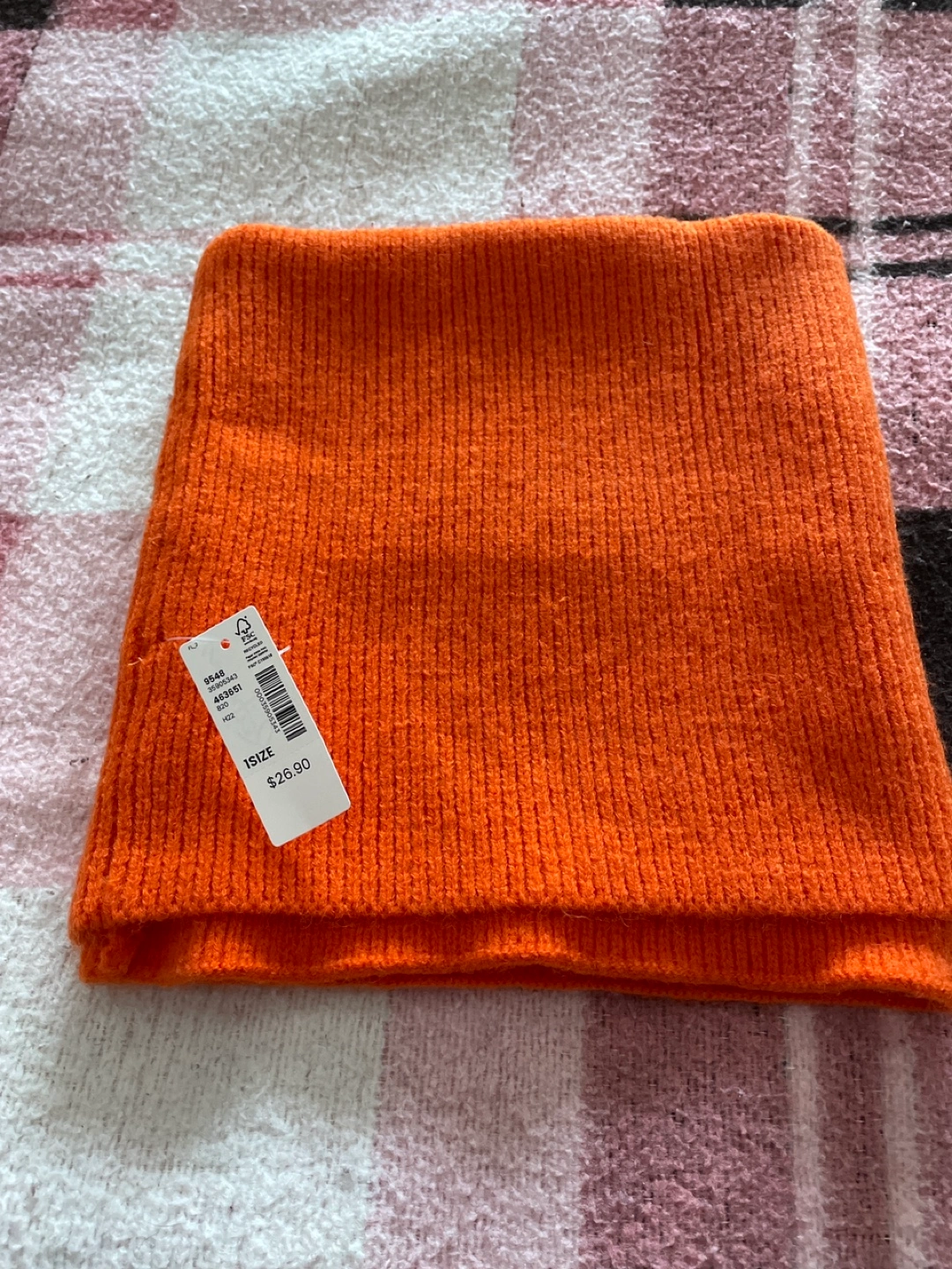 1000+Orange knit infinity scarf. One size fits all. Smoke free and pet free home. Neck warmer brand new