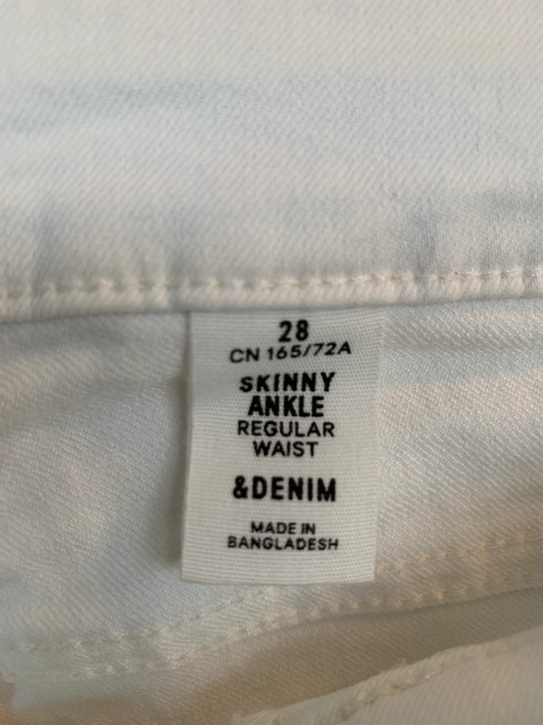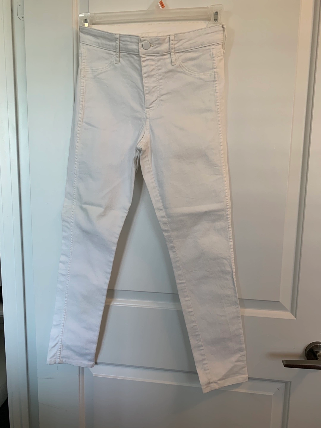 White skinny ankle jeans with a regular waist.