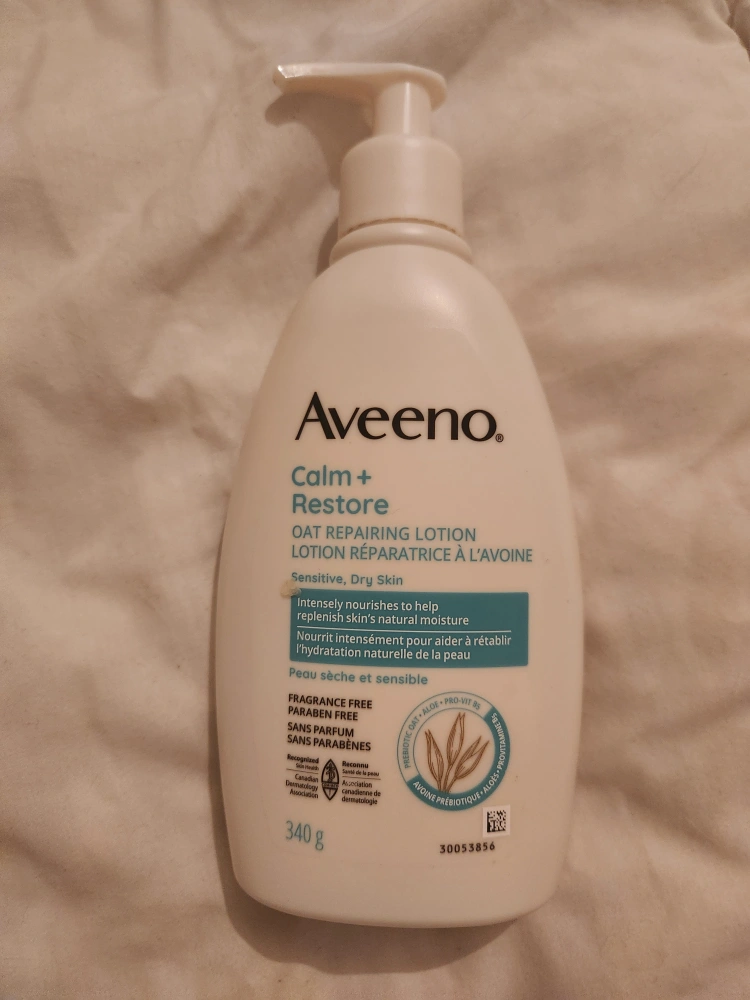 The AVEENO Calm + Restore Oat Repairing Lotion is a skincare product designed to soothe and hydrate sensitive, dry skin. It is formulated with a combination of ingredients, including: Prebiotic oat: Helps restore and maintain the skin’s natural moisture barrier, improving skin resilience. Aloe: Provides soothing and calming properties to reduce irritation and inflammation. Pro-vitamin B5: Moisturizes and nourishes the skin, leaving it feeling soft and supple. Soothe and calm sensitive skin Hydrate and moisturize dry skin Restore the skin’s natural moisture barrier Improve skin resilience and reduce dryness The product’s gentle, non-irritating formula makes it an excellent choice for those with sensitive skin. It is also fragrance-free, reducing the risk of skin irritation or allergic reactions.