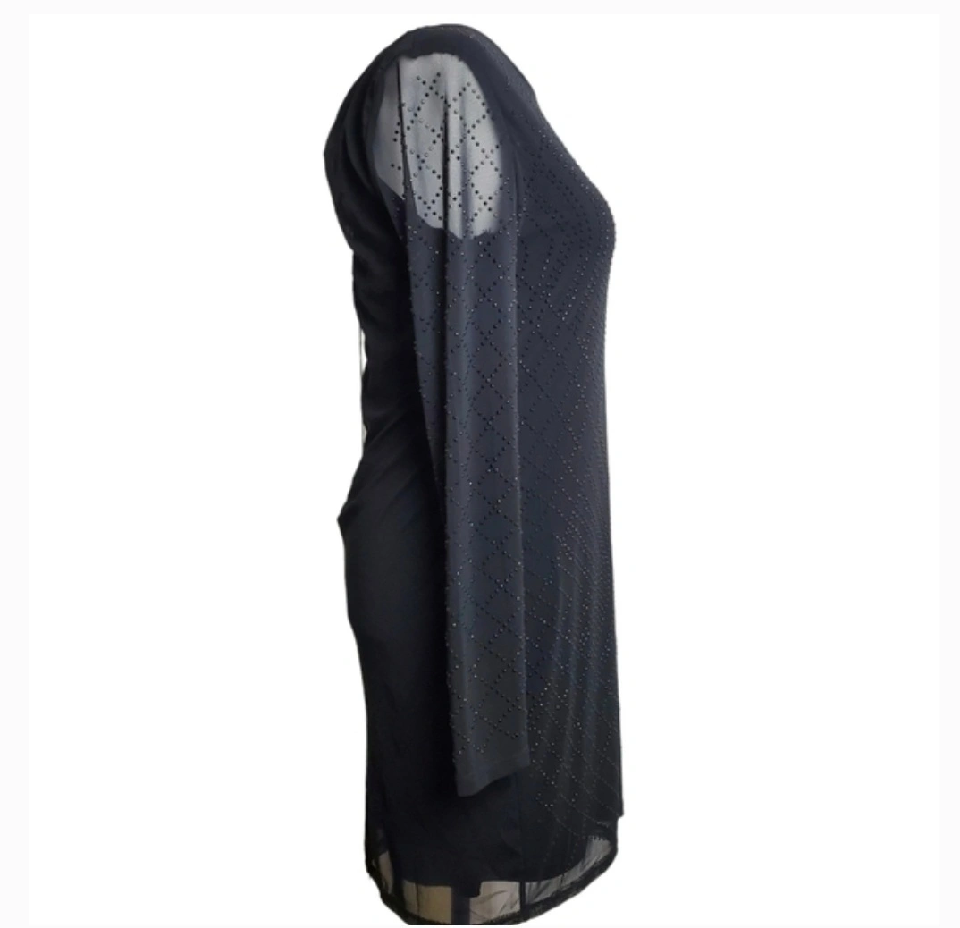 47Black long sleeve dress with sequins. Sleeves are sheer mesh with sequins. Size - M, New ( with tag)