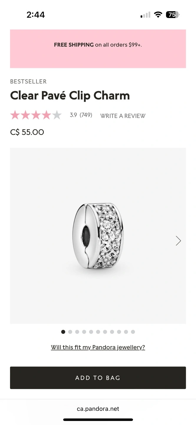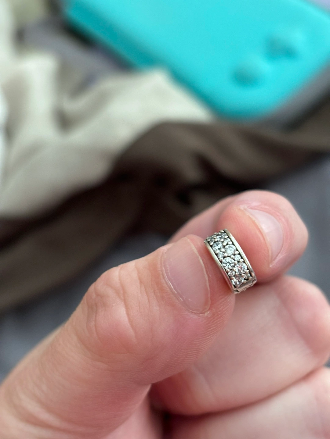 44Silver charm with clear stones. Fits Pandora bracelets. These are spacers. Just needs a clean :)
