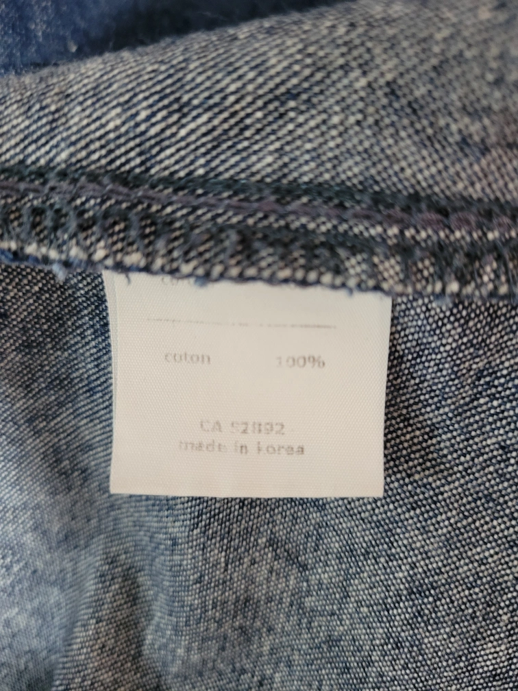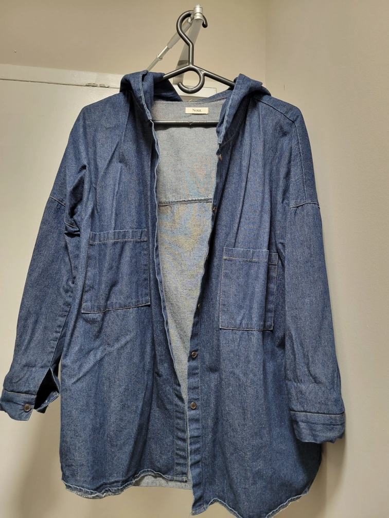 217Long sleeve button up denim shirt with a hood. Two front pockets. Made of 100% cotton. Cash only Pick up only
