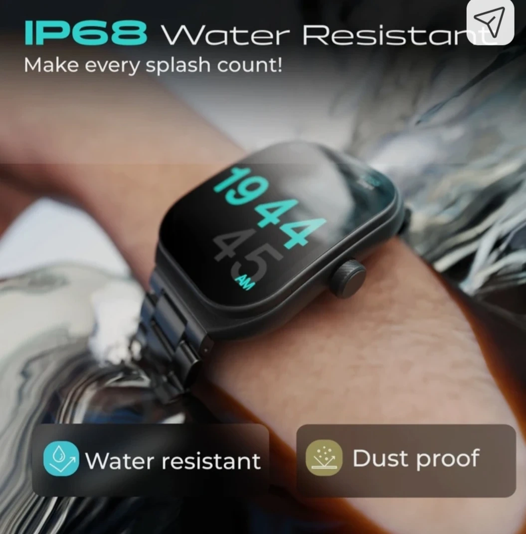 This smartwatch features a 2.01-inch curved HD display with a 240x296 resolution. It offers Bluetooth 5.3 connectivity and is IP68 water and dust resistant. Includes original box and accessories.