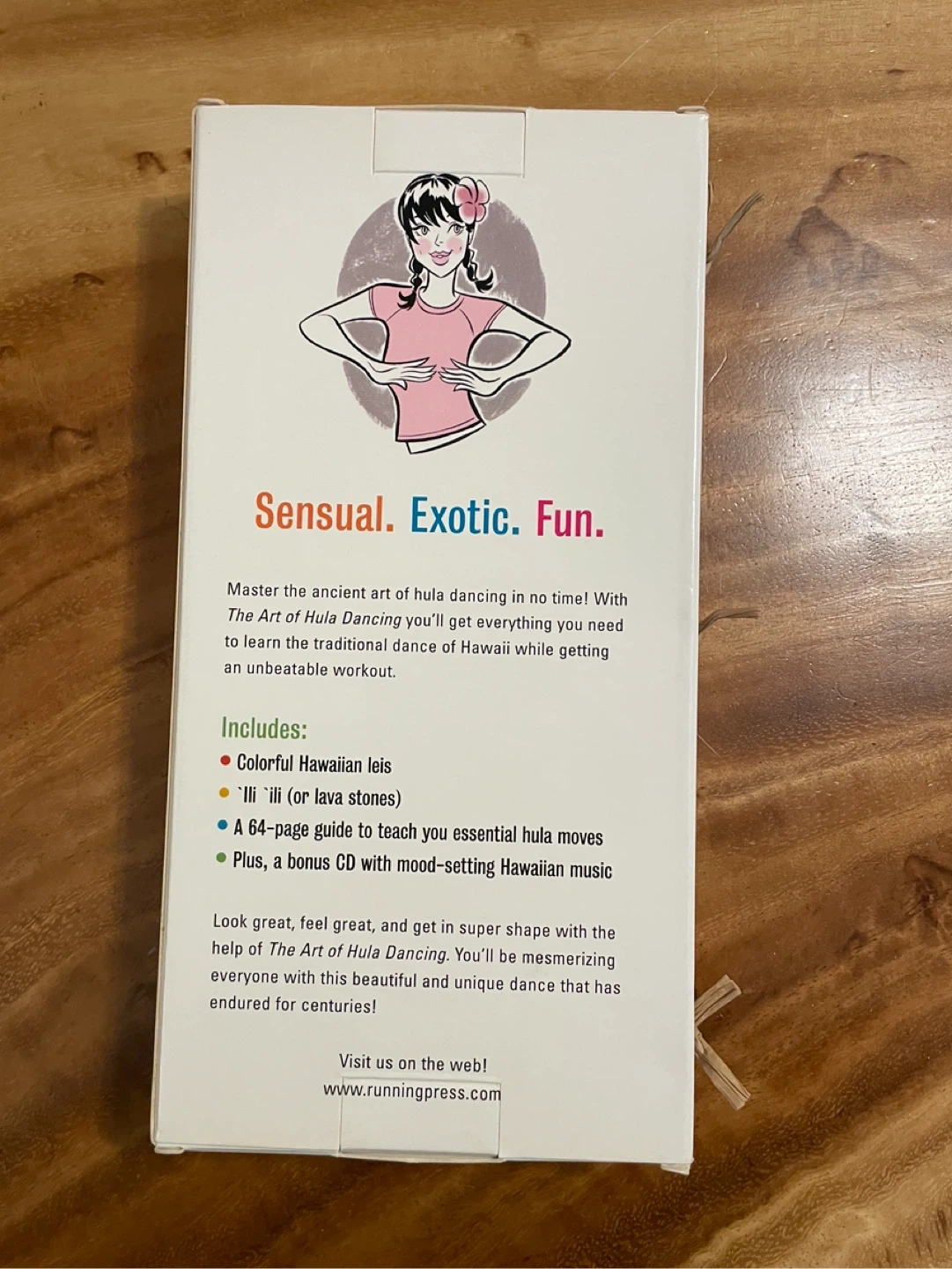 Learn the ancient art of Hula Dancing with this guide. It includes colorful Hawaiian leis, 'ili'ili (or lava stones), a 64-page guide to teach essential hula moves, and a bonus CD with mood-setting Hawaiian music. Master the traditional dance of Hawaii for an unbeatable workout!