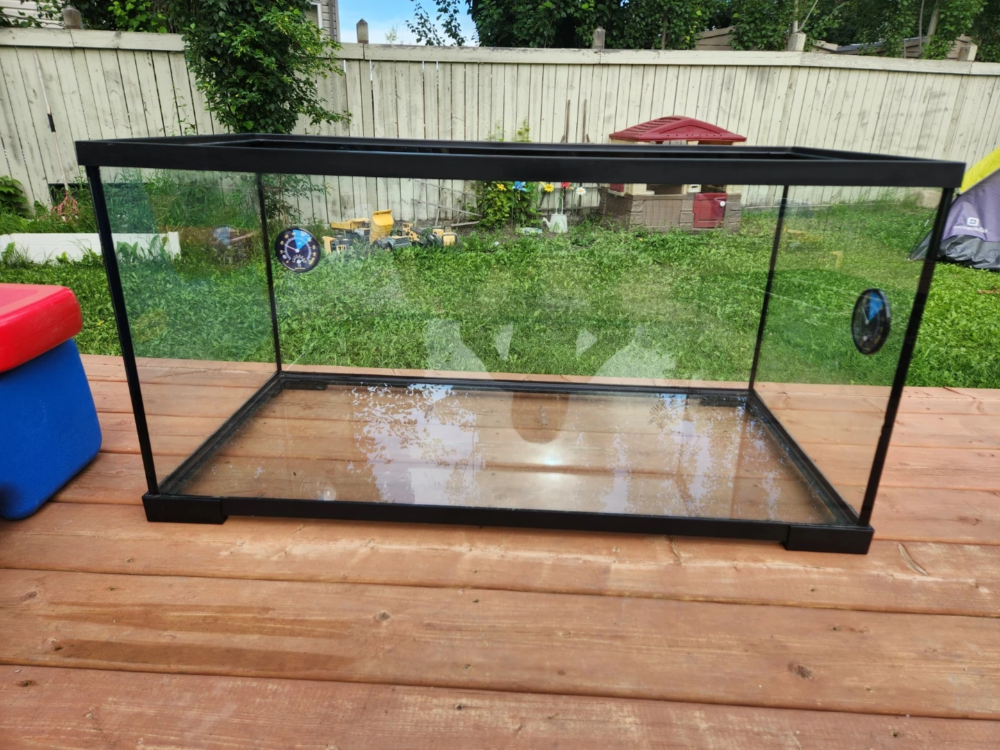 This Thrive reptile starter kit includes a 40-gallon glass terrarium. It also comes with a heating mat, two hides, a food dish, and tortoise food. Perfect for setting up a new habitat!