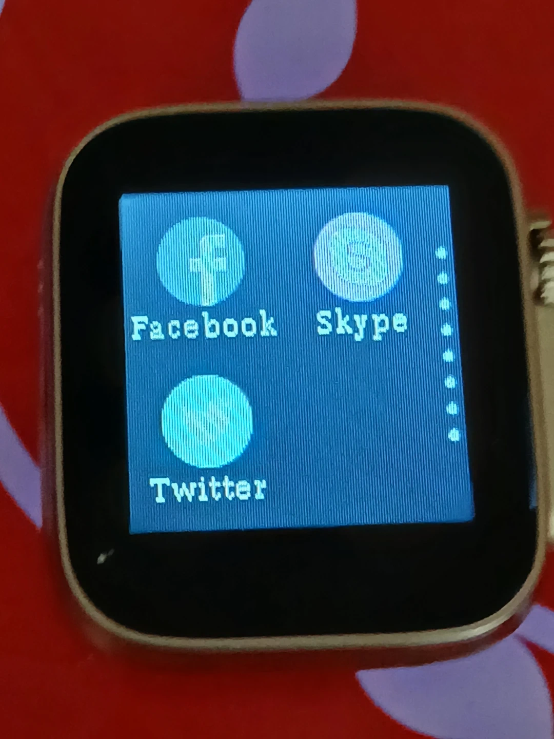This smart watch tracks steps, distance, and calories. It also displays time and includes apps like weather, facebook, twitter, whatsapp and stopwatch. It's super easy to connect to your phone only turn Bluetooth on and connect.