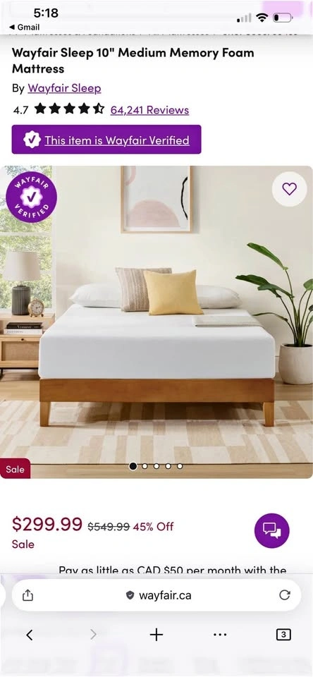 Bed set (Mattress Double/Full + Box spring + Adjustable bed frame) for $200.