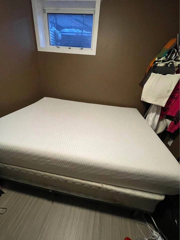 Bed set (Mattress Double/Full + Box spring + Adjustable bed frame) for $200.