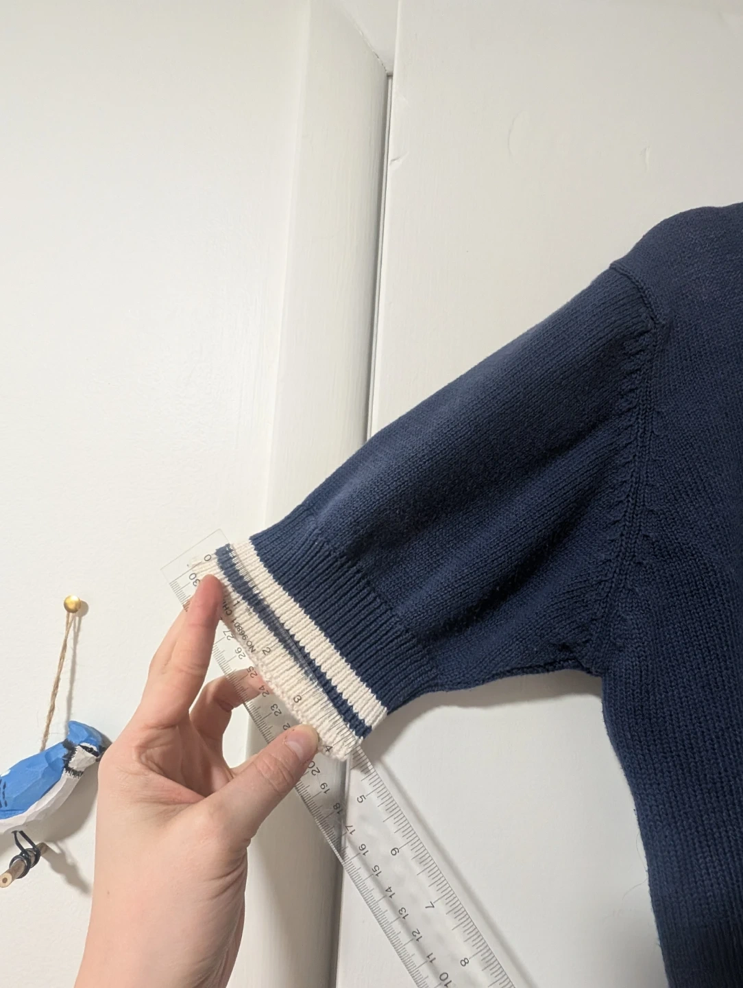 Selling a Braemar of Scotland sailor knit top! It's a beautiful navy blue colour with white detailing. The material is 100% cotton. The size is 40.