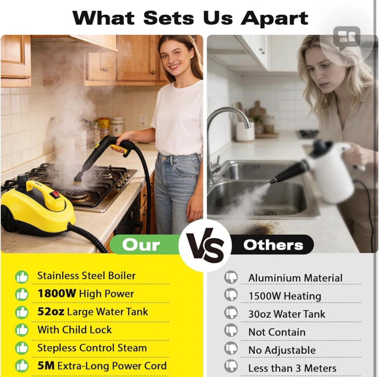 Steam Cleaner, Heavy Duty Canister Extra-Long Power