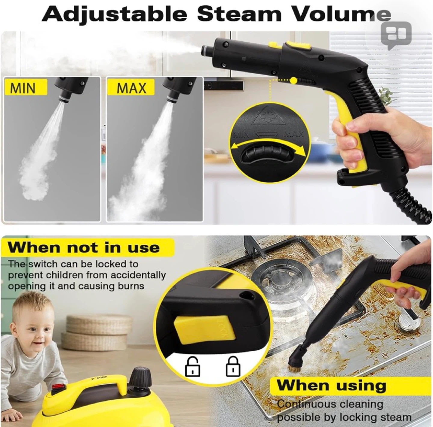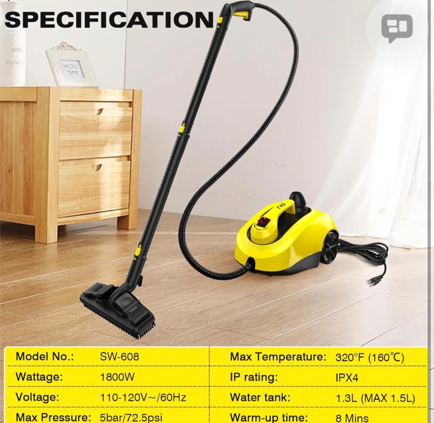 Steam Cleaner, Heavy Duty Canister Extra-Long Power