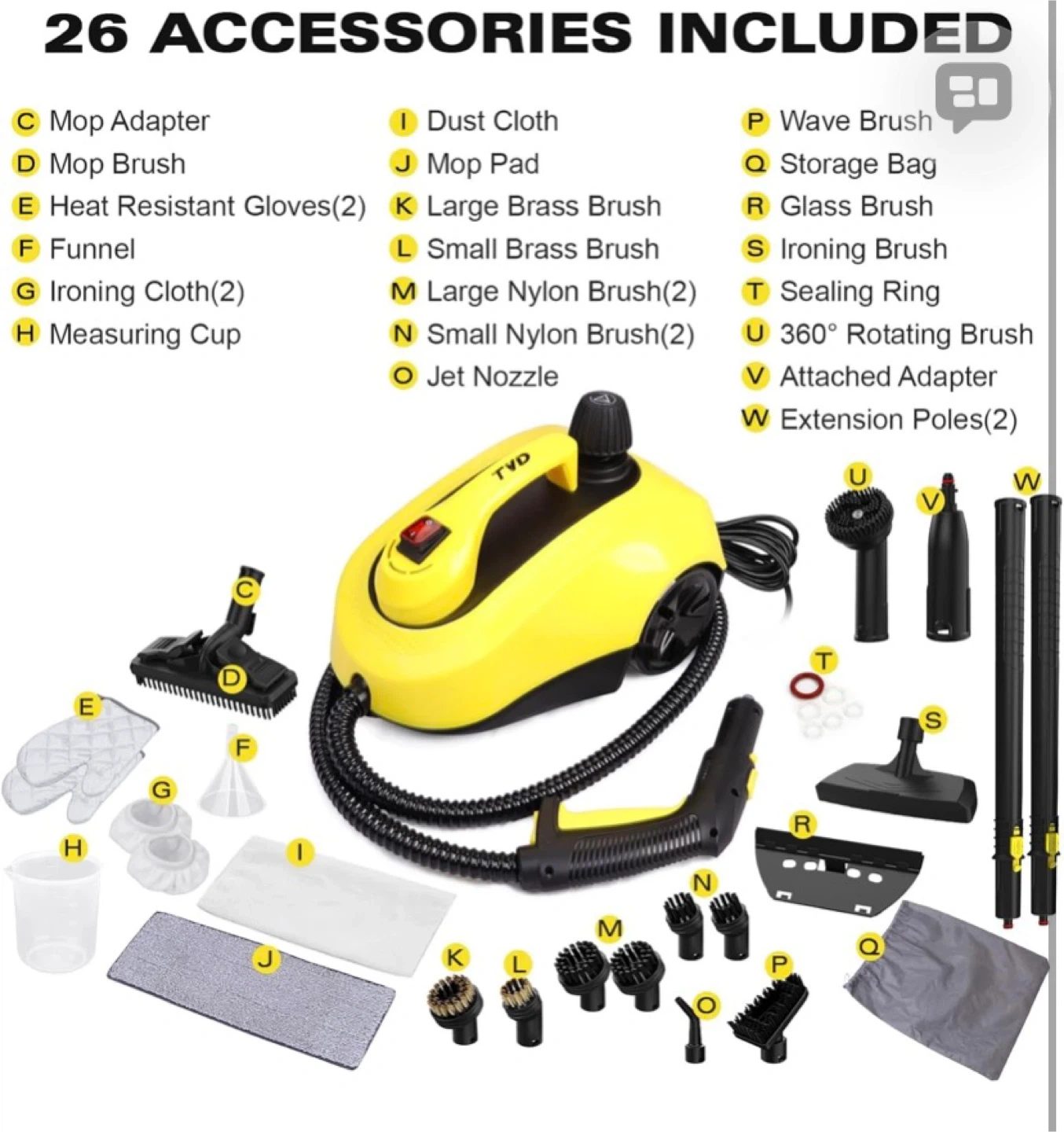 TVD Steam Cleaner, Heavy Duty Canister Steamer with 26 Accessories, Steam Mop with 5M Extra-Long Power Cord for Home Floor Cleaning, Grout,Upholstery,Car Detailing.