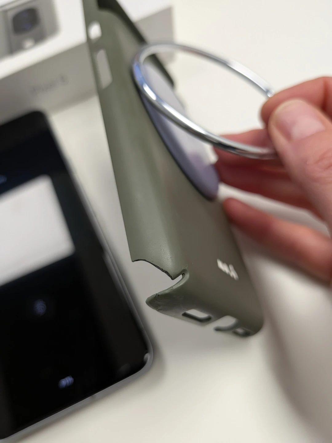 Extras: premium Mous (used) case and Pixelsnap Ring Stand (new)