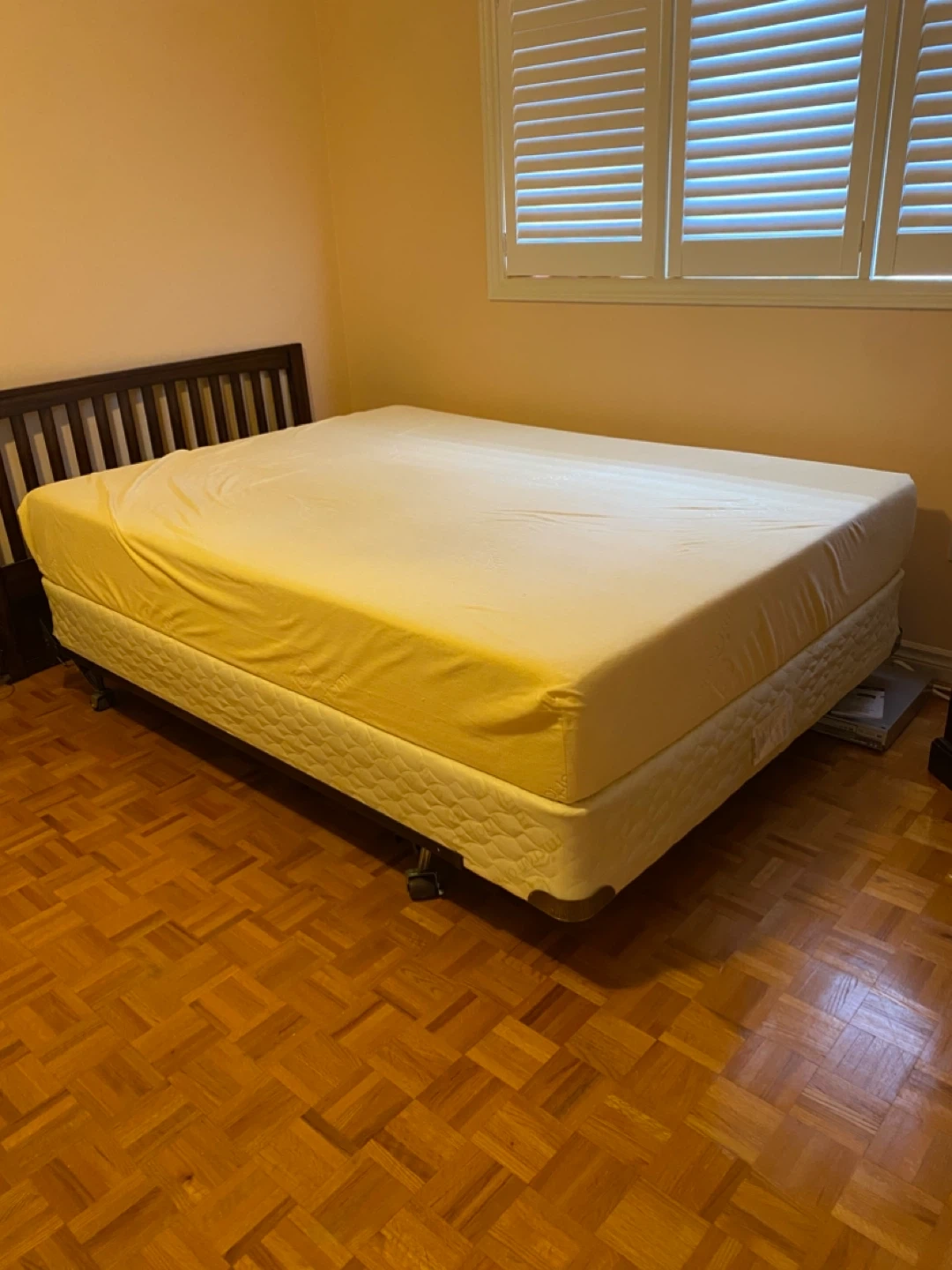 Sealy Mirrorform memory foam Queen size mattress and box spring included. It has always had a mattress protector on it. Excellent condition. It's a standard queen size. From smoke free home. Estate sale. Please note: pick up location is at McCowan and 14th Avenue.