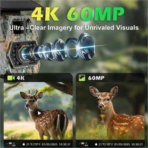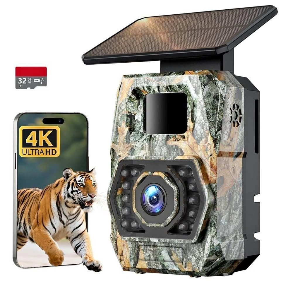 Solar Trail Cameras 60MP 4K, WiFi Bluetooth, Game Camera with Night Vision. Motion activated with a 0.1s trigger. Includes a 32GB Micro SD card. This is an IP66 waterproof wildlife camera with 850nm low glow infrared. Feel free to message if you have any questions!