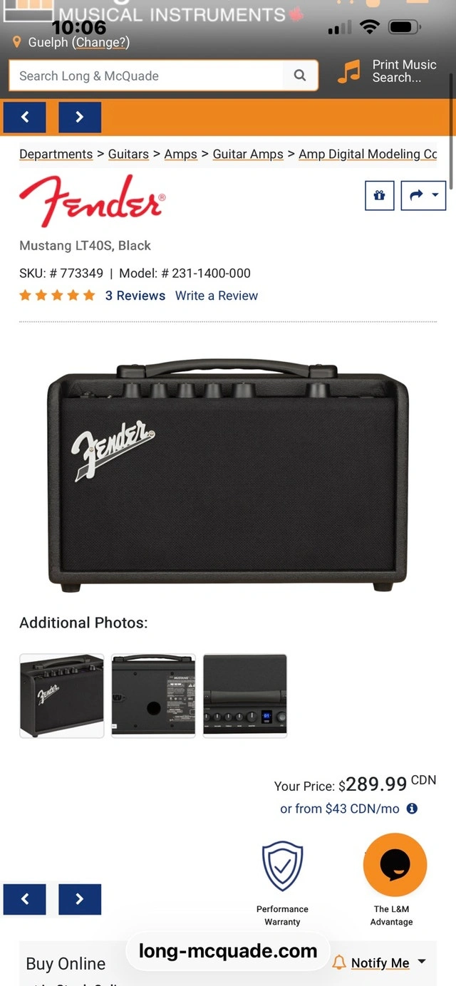 Selling a barely used complete electric guitar setup in great condition. Included: Ibanez AZES40 electric guitar (HSS pickups, whammy bar included), Fender Mustang LT40S 40W amp with built-in effects, padded gig bag, and instrument cable. Everything works perfectly and has been lightly used in a smoke-free home.