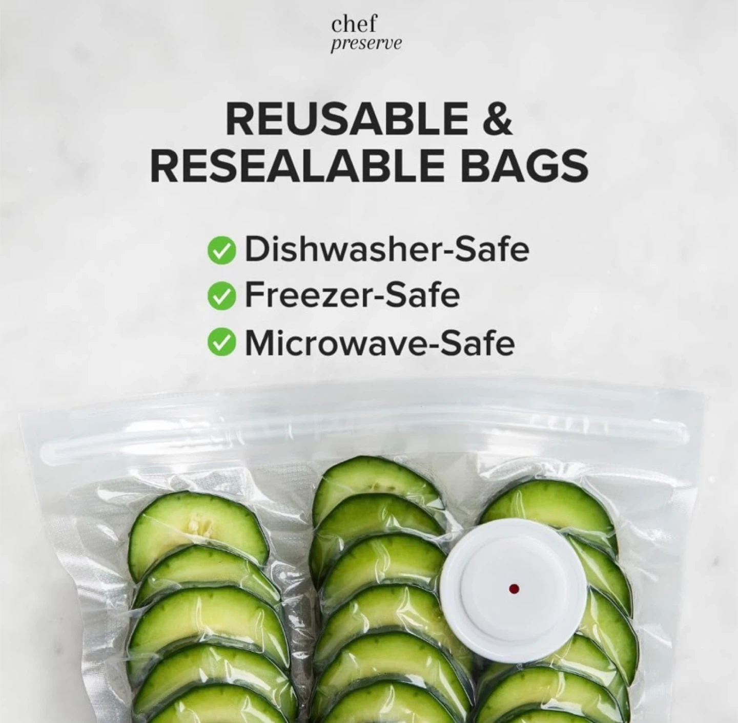 Includes 7 Reusable vacuum seal bags (5 small, 2 medium)
