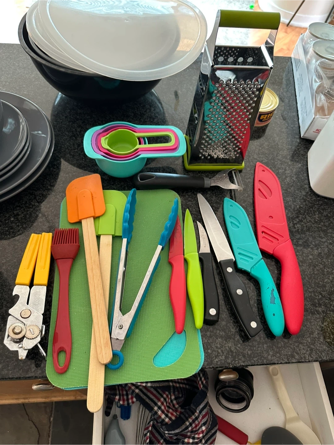 variety of kitchen utensils. These include knives, spatulas, measuring cups, tongs, and more. Great for anyone setting up a new kitchen or looking to add to their collection!