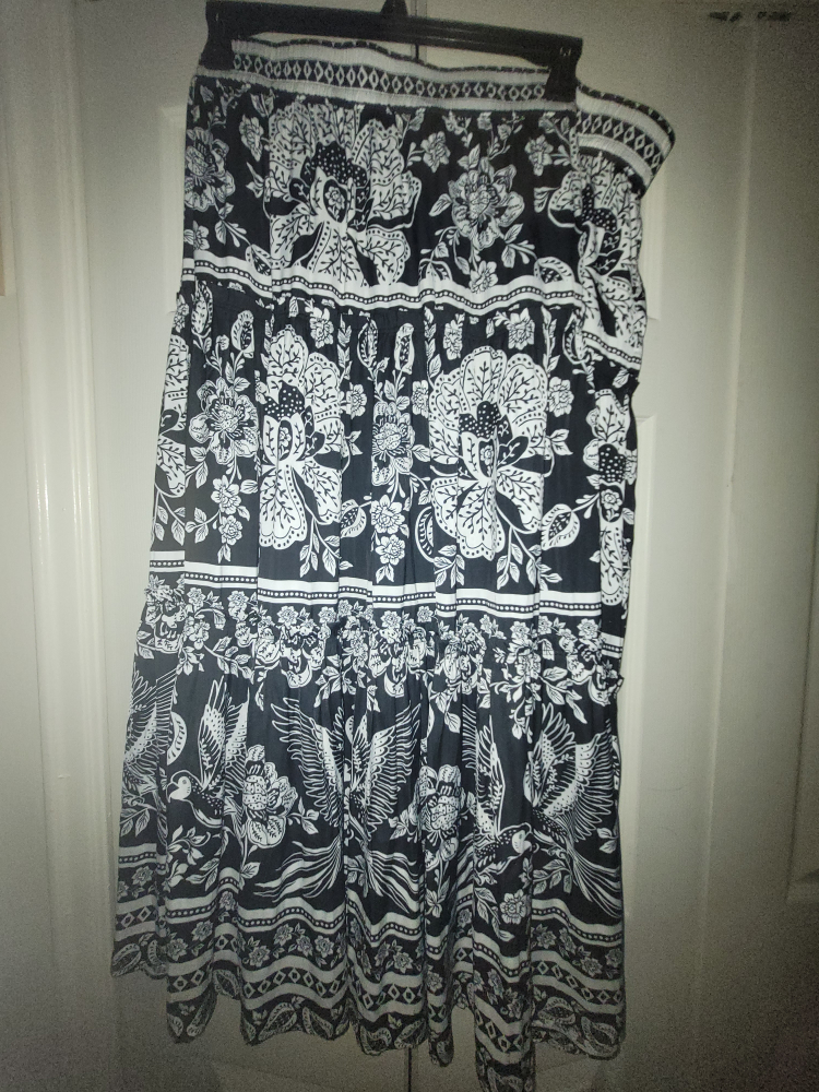Selling a Maison d'Amelie skirt in size 3X. It's a beautiful black and white floral and bird print. Perfect for any occasion! plus size xxxl