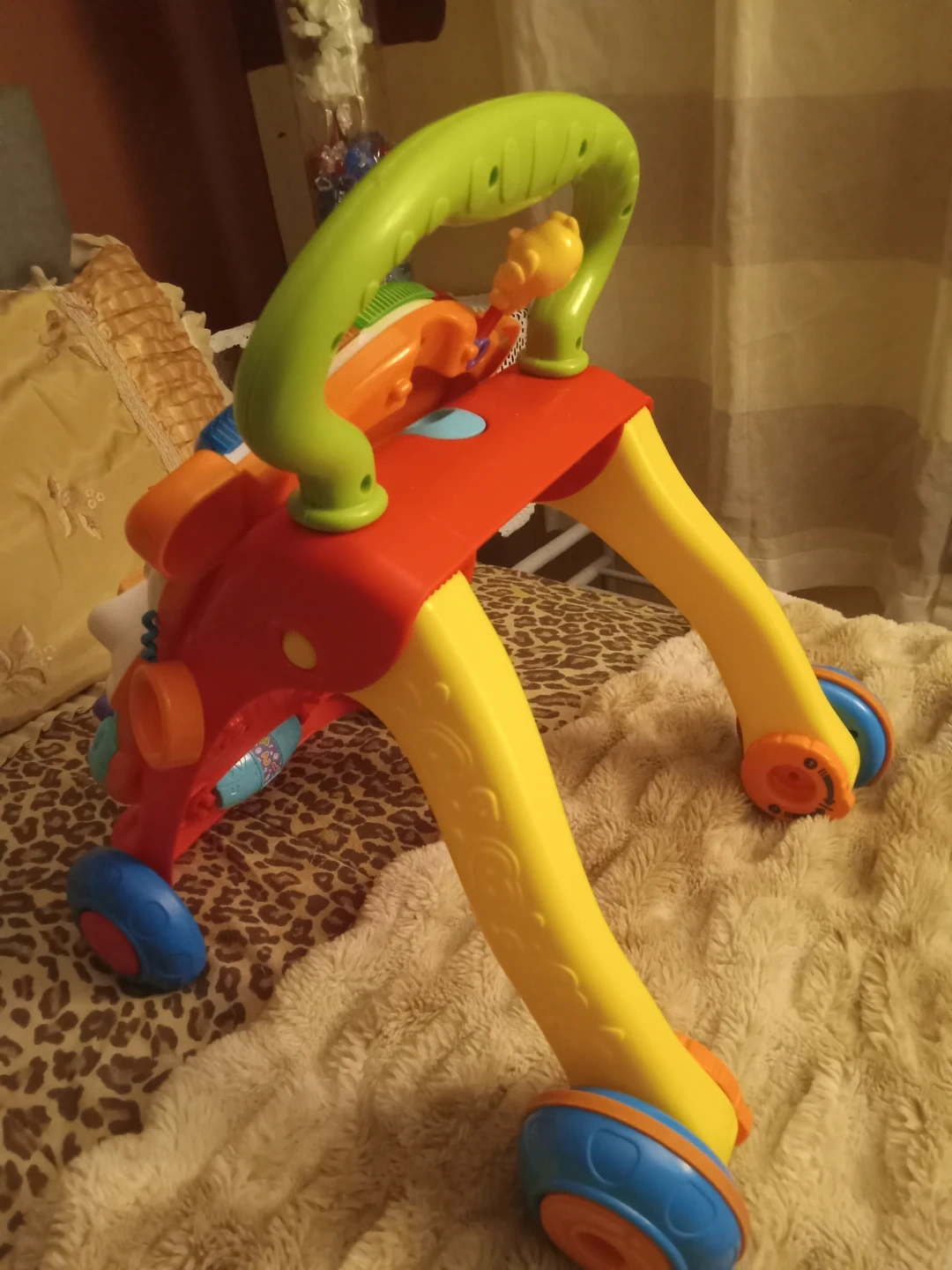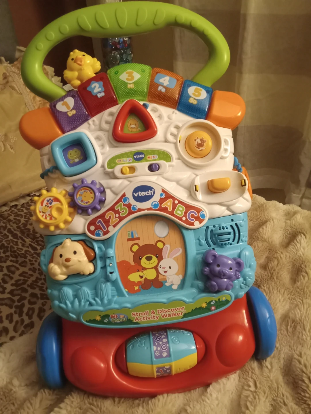 This VTech Stroll & Discover Activity Walker is perfect for little ones learning to walk. It has interactive buttons, gears, and a steering wheel for playtime fun. Recommended for babies and toddlers.